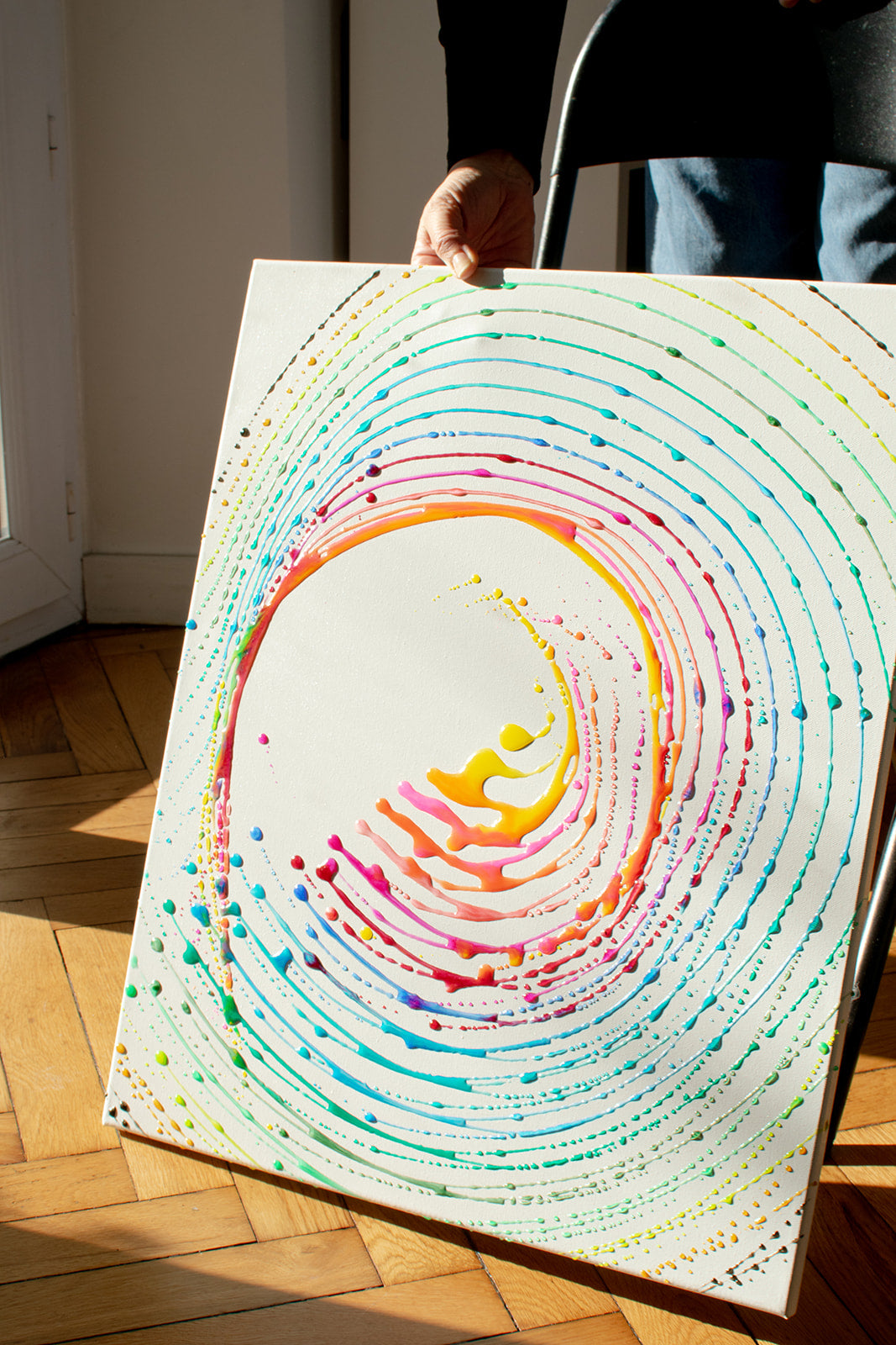 C’est à 44 ans que la peinture entre dans sa vie. Une rencontre presque silencieuse, intime. La découverte de la résine époxy ouvre un espace nouveau : un territoire personnel, hors cadre professionnel, où le geste apaise autant qu’il engage.