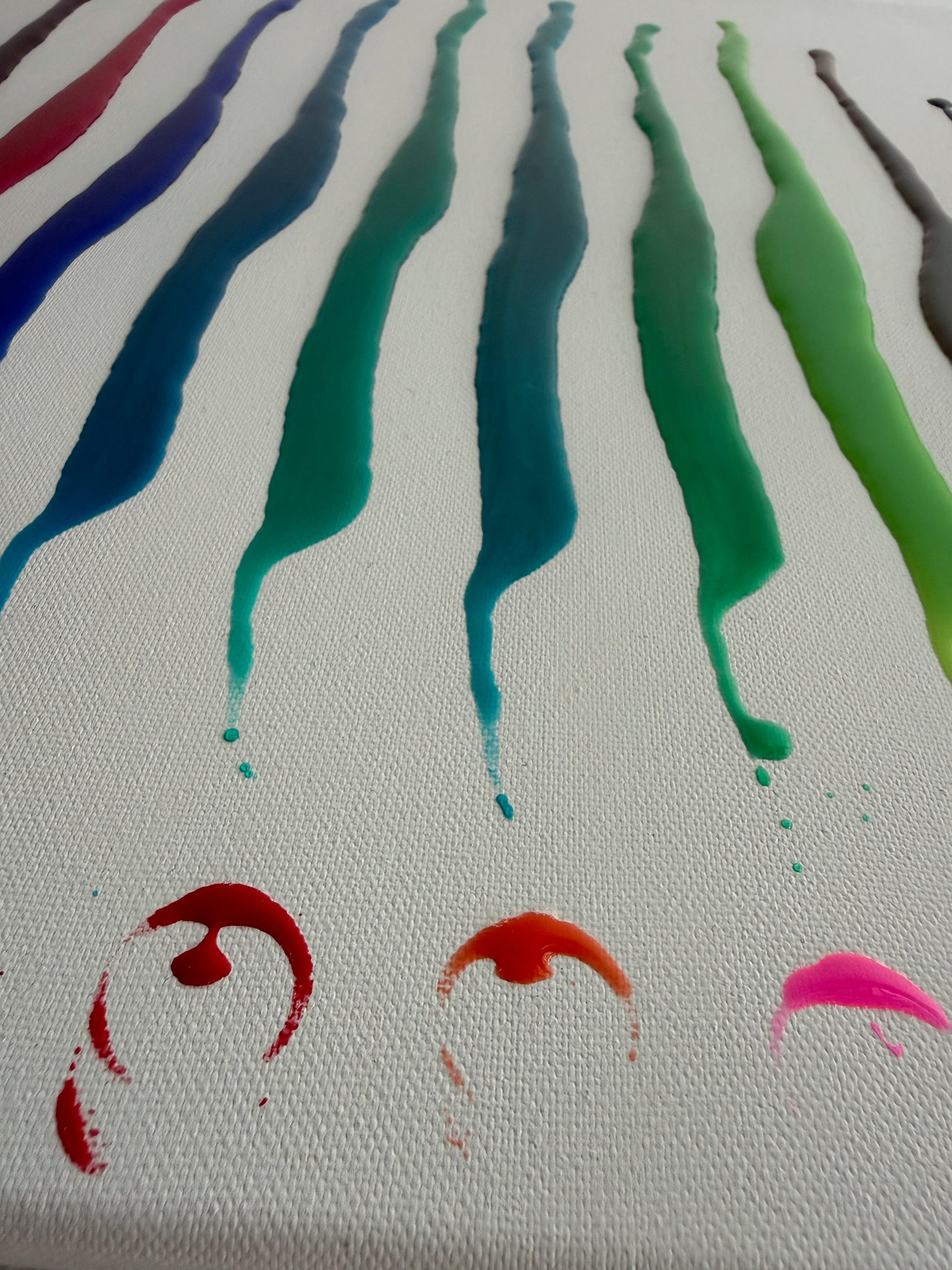 Sous la transparence de la résine, les pigments conservent leur éclat originel, donnant à l’œuvre une intensité presque spirituelle.